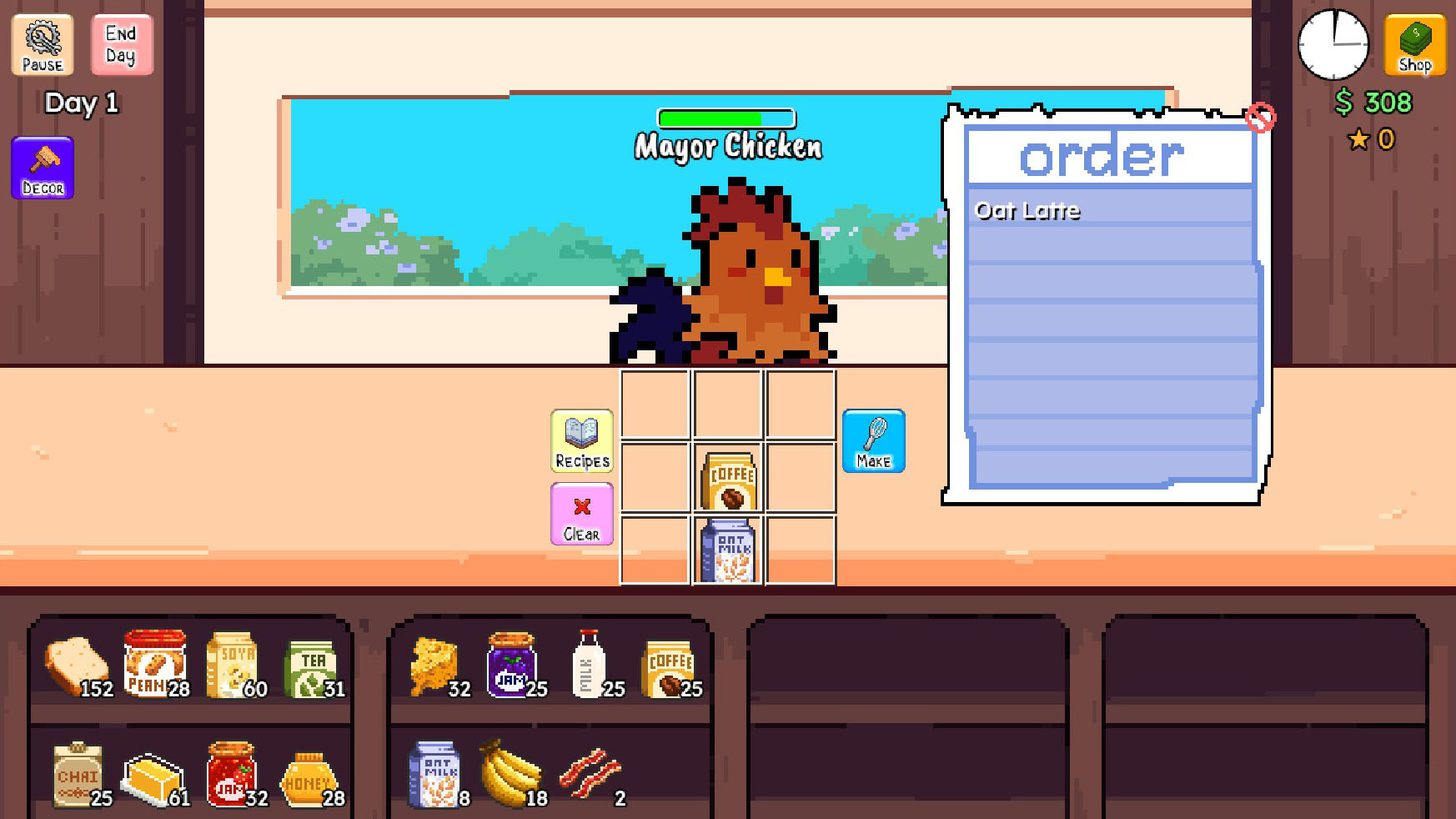 A cozy, casual cafe simulator with community interactivity!